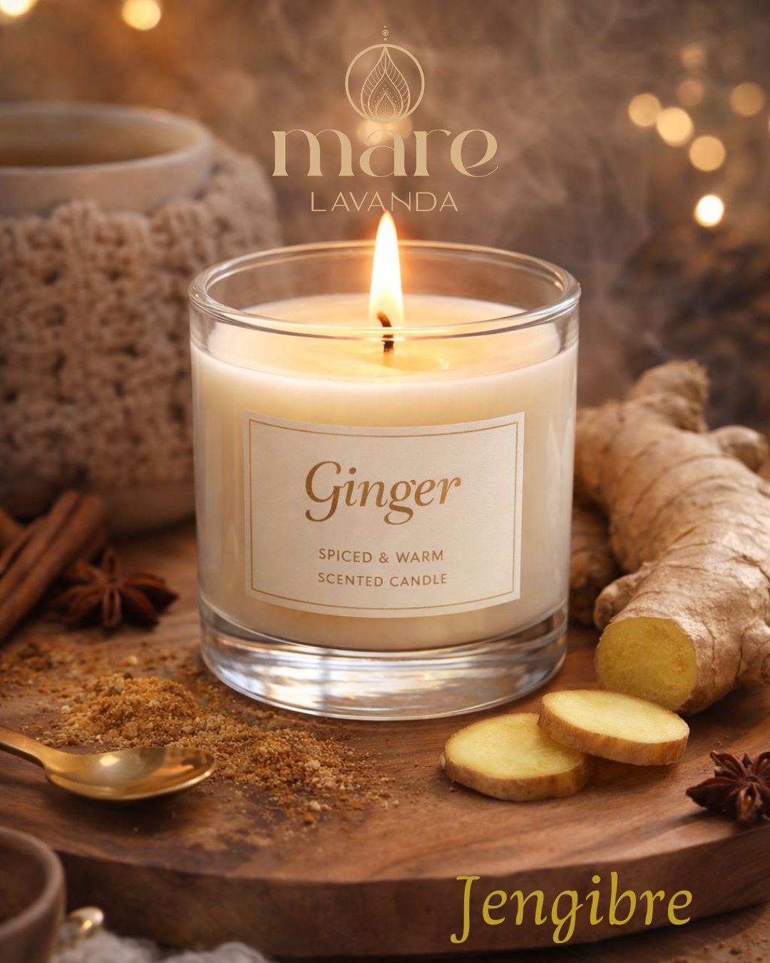 Una vela con aroma a jengibre te dará la sensación de especias recién molidas, bebidas reconfortantes y cocinas aromáticas llenas de vida. También evoca la energía revitalizante de infusiones calientes o postres especiados. Es una fragancia que transmite calidez, dinamismo y bienestar. Ideal para crear ambientes acogedores con toques estimulantes.