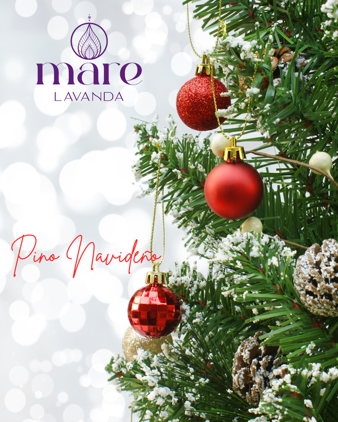 Fragancia clásica de Navidad, con toques de pino para realzar su aroma fresco y auténtico, enriquecido con notas de cedro, abeto, cedro rojo y una sutil pincelada de eucalipto.